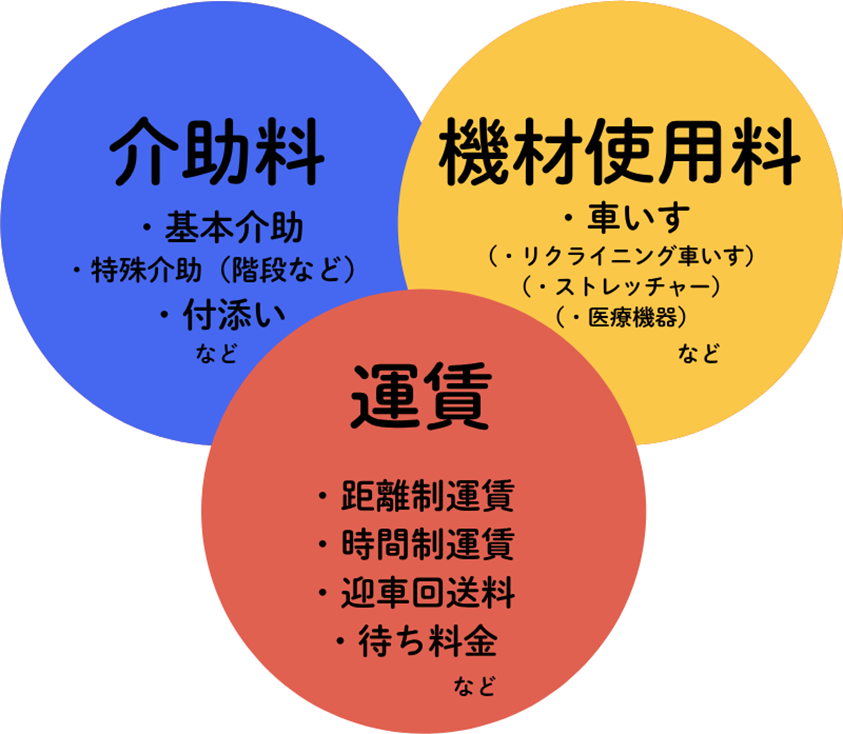 ただし、運賃や車いす・ストレッチャーなどのレンタル料金は介護保険の適用外で全額自己負担です。